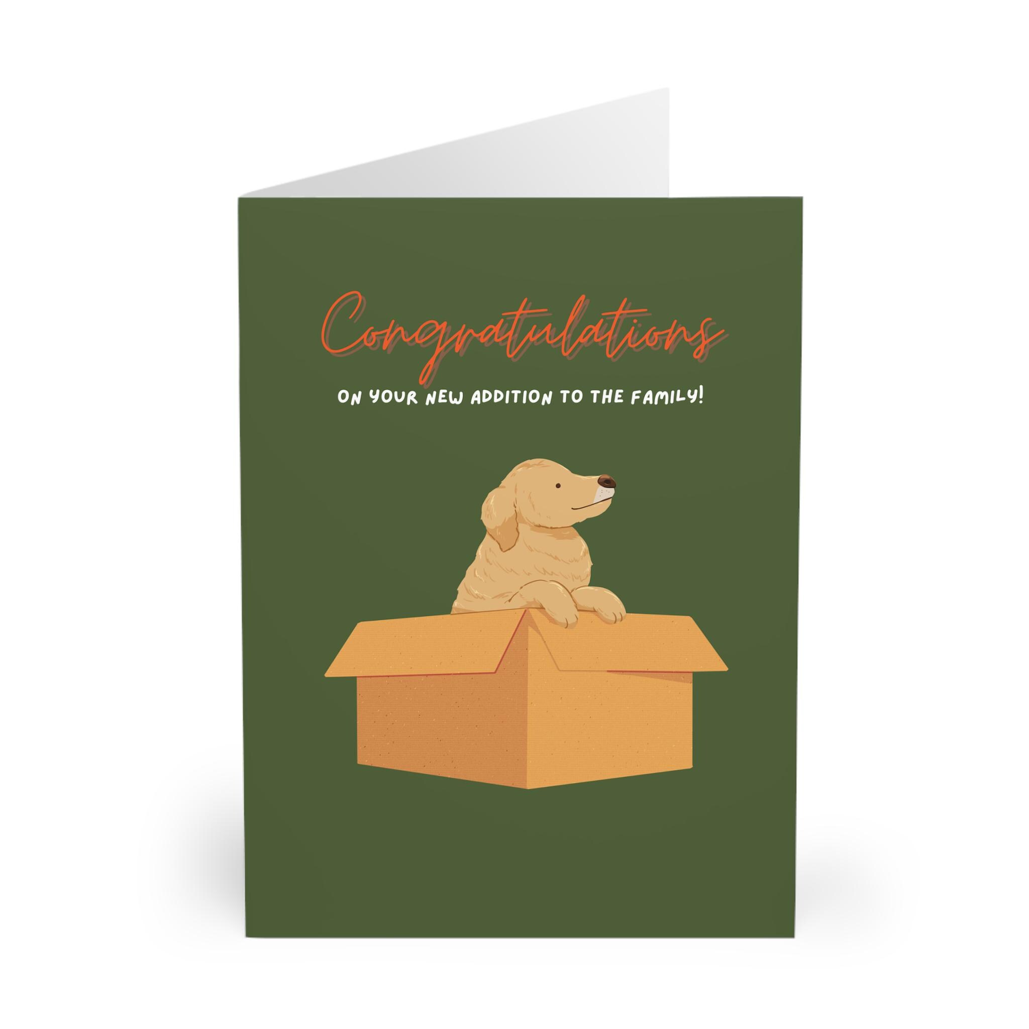 New dog puppy celebration made easy with this charming card that says Congrats on Your New Dog and Welcome Home. Perfect as a gift for new dog mums, new puppy parents, or anyone welcoming a furry friend into their family.