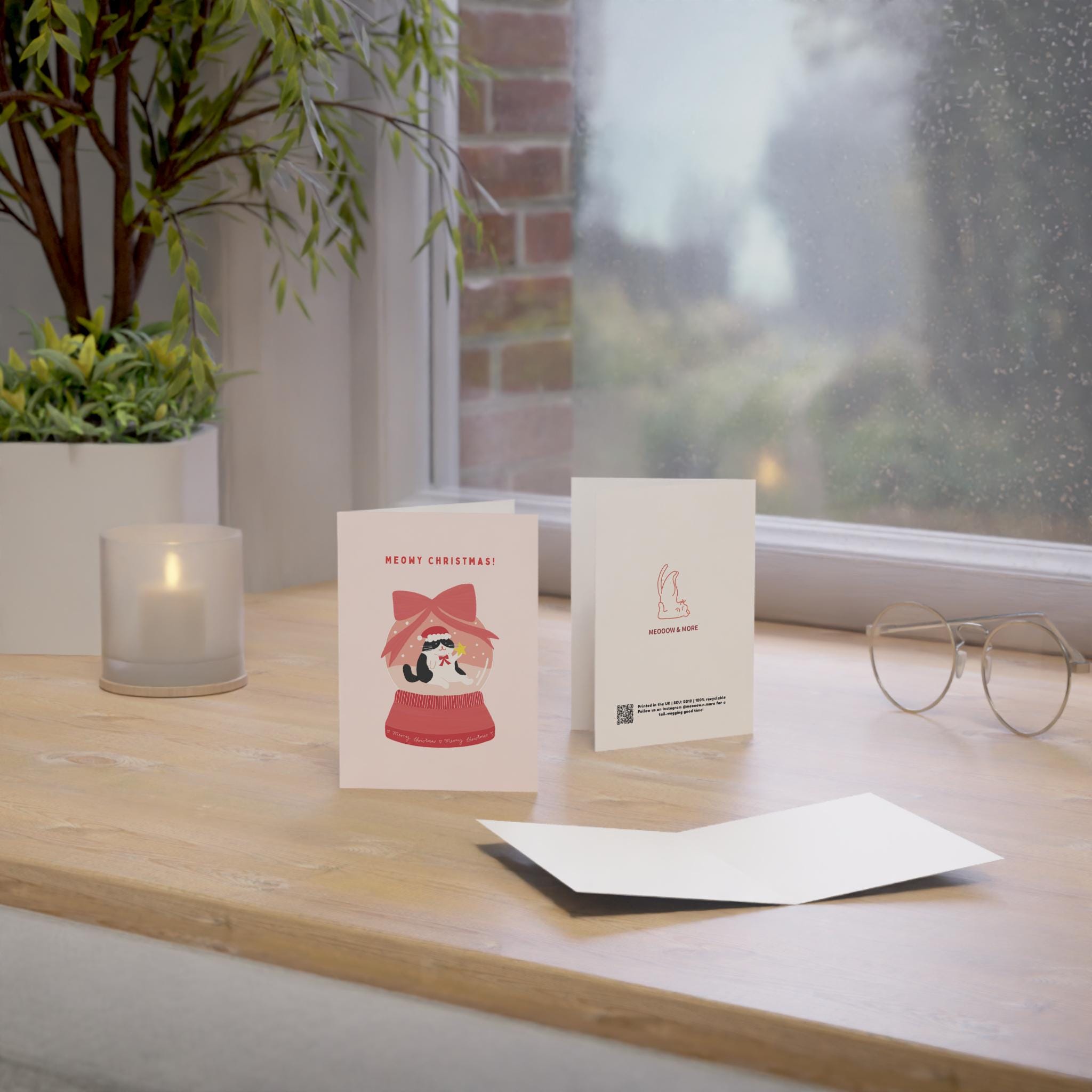Celebrate the festive season with this charming cat-themed Christmas card, perfect for adding warmth and whiskers to your holiday greetings. Each card features an adorable illustrated cat in a cozy, seasonal design — ideal for anyone who loves cats, cute art, and Christmas cheer.